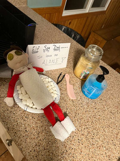 This year our Christmas Elf Buddy returned from the North Pole and he was very entertaining this year. The boys loved seeing what tricks and messes that he could make each day. The boys all understood the rules of the Elf but..... someone decided to touched him. Buddy then had to take a day away at the spa to recharge his magic. He was dearly missed while he was away and thankfully he didn't require anymore spa days.